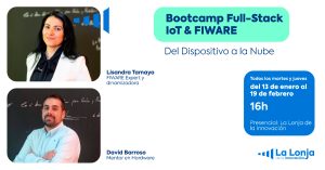 Todo guiado por profesionales de referencia como Lisandra Tamayo, FIWARE Expert y dinamizadora, y David Barroso, mentor de hardware en La Lonja de la Innovación, quienes te acompañarán paso a paso con ejercicios reales y buenas prácticas.