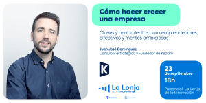La Lonja de la Innovación tiene el placer de invitarte a un taller único para descubrir cómo hacer crecer una empresa de la mano de Juan José Domínguez, Strategic Consultant & Founder of Kedaro.